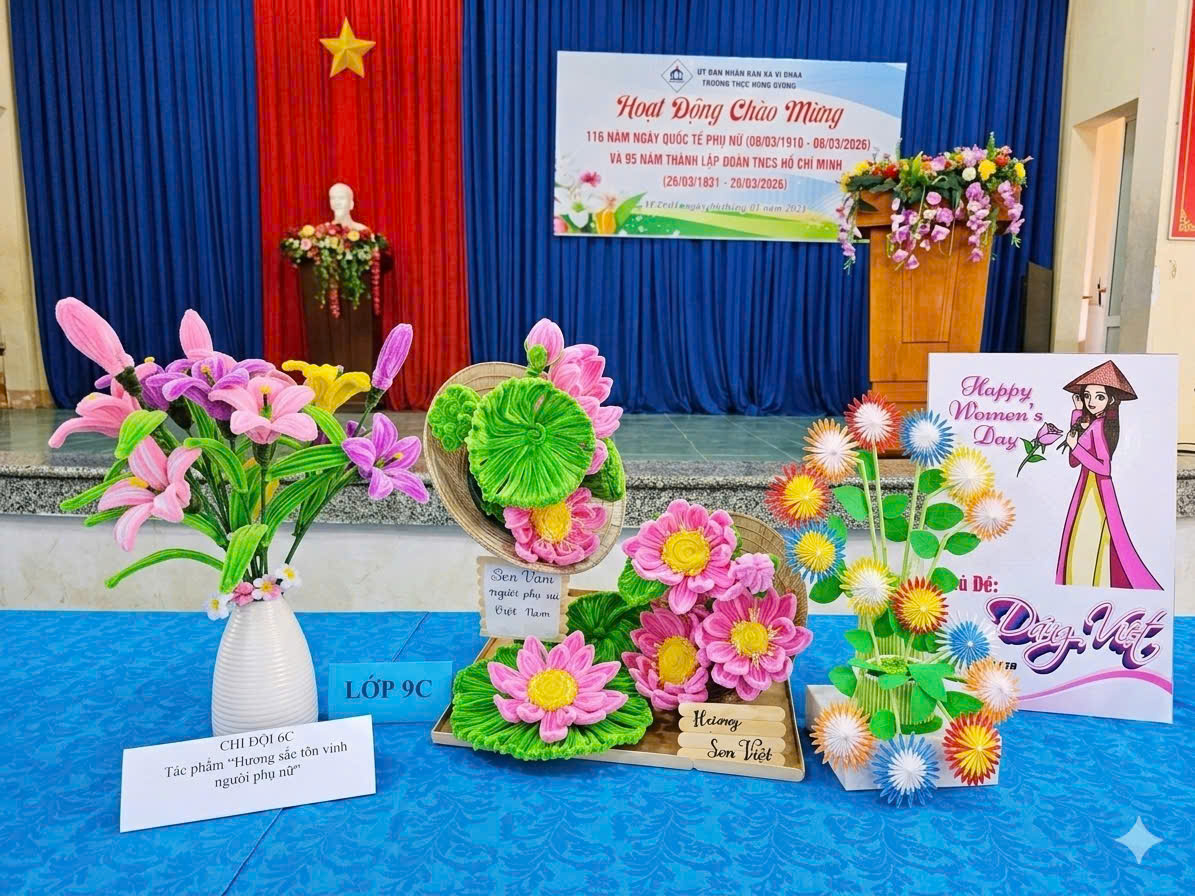 📅 Chiều ngày 06/3/2026, trong không khí rộn ràng của những ngày Tháng Ba lịch sử, Trường THCS Hùng Vương đã tổ chức Hội thi “Làm hoa thủ công” dành cho học sinh toàn trường. Hoạt động được tổ chức nhằm thiết thực chào mừng 116 năm Ngày Quốc tế Phụ nữ (08/3/1910 – 08/3/2026), đồng thời hướng tới kỷ niệm 95 năm Ngày thành lập Đoàn TNCS Hồ Chí Minh (26/3/1931 – 26/3/2026).