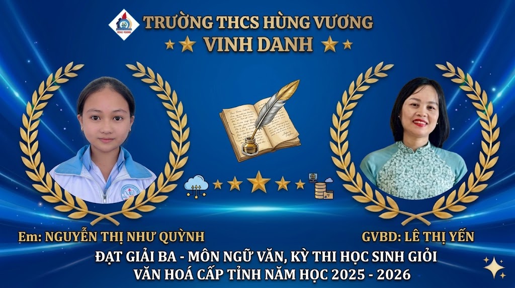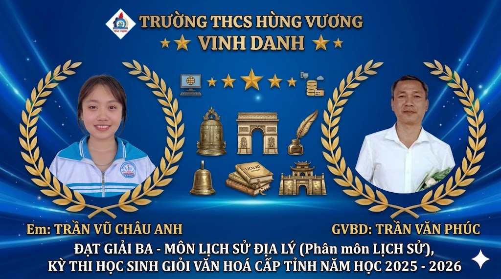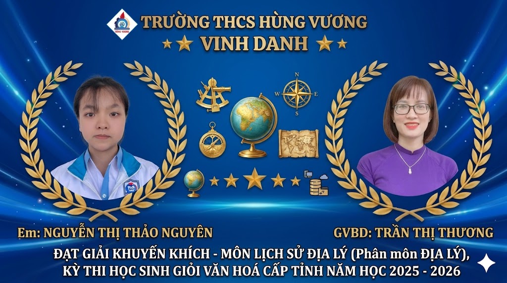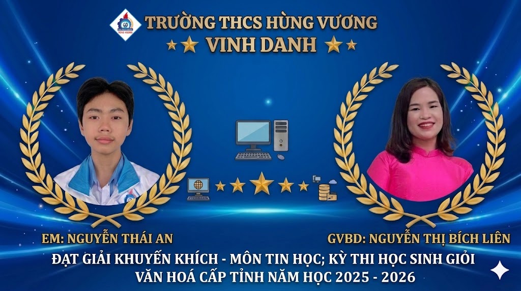 CHÚC MỪNG CÁC EM HỌC SINH TRƯỜNG THCS HÙNG VƯƠNG ĐẠT THÀNH TÍCH XUẤT SẮC TẠI KỲ THI CHỌN HỌC SINH GIỎI CẤP TỈNH NĂM HỌC 2025 – 2026