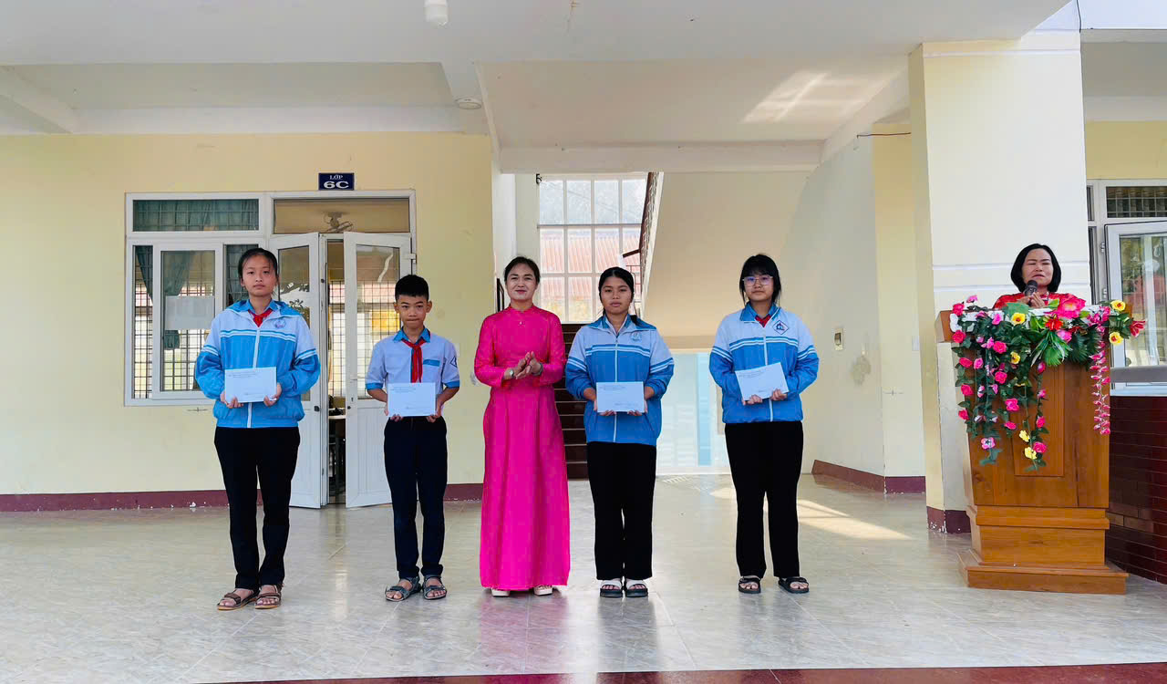 Cô Đỗ Thị Loan – Bí thư Chi bộ, Hiệu trưởng Nhà trường trao giải cho các tập thể đạt thành tích cao: Giải Nhất (lớp 9A); giải Nhì (lớp 6A); giải ba (lớp 8A); giải Khuyến khích (lớp 7B)