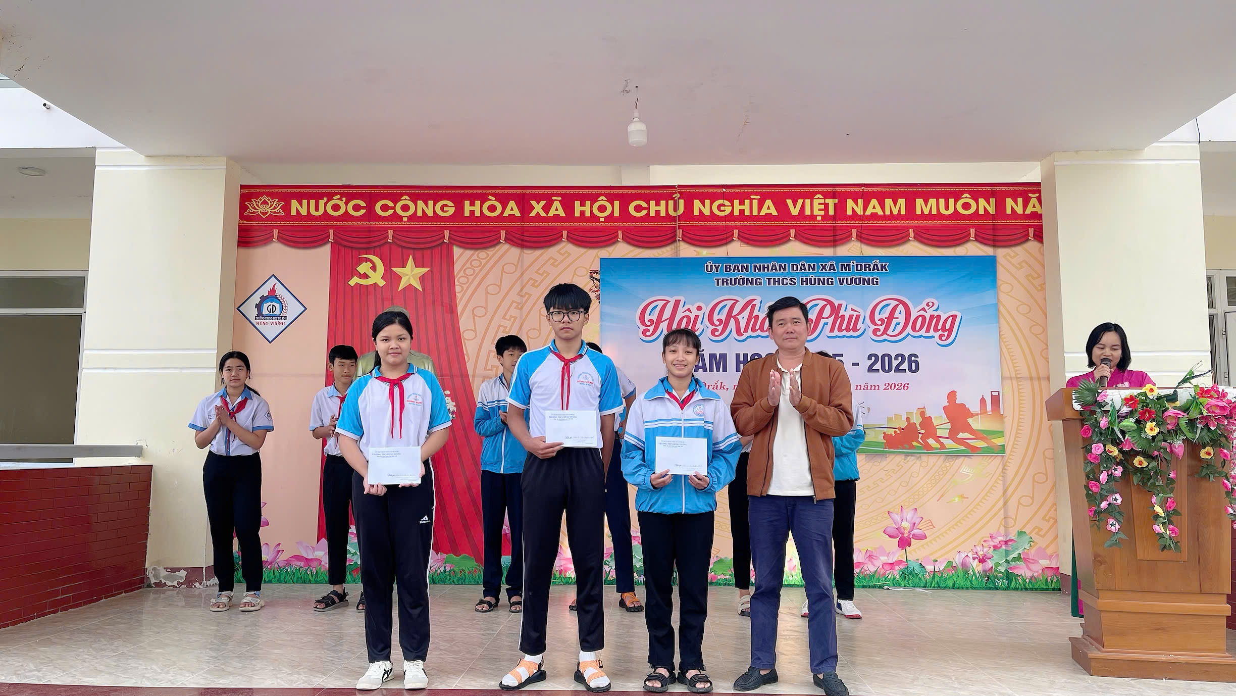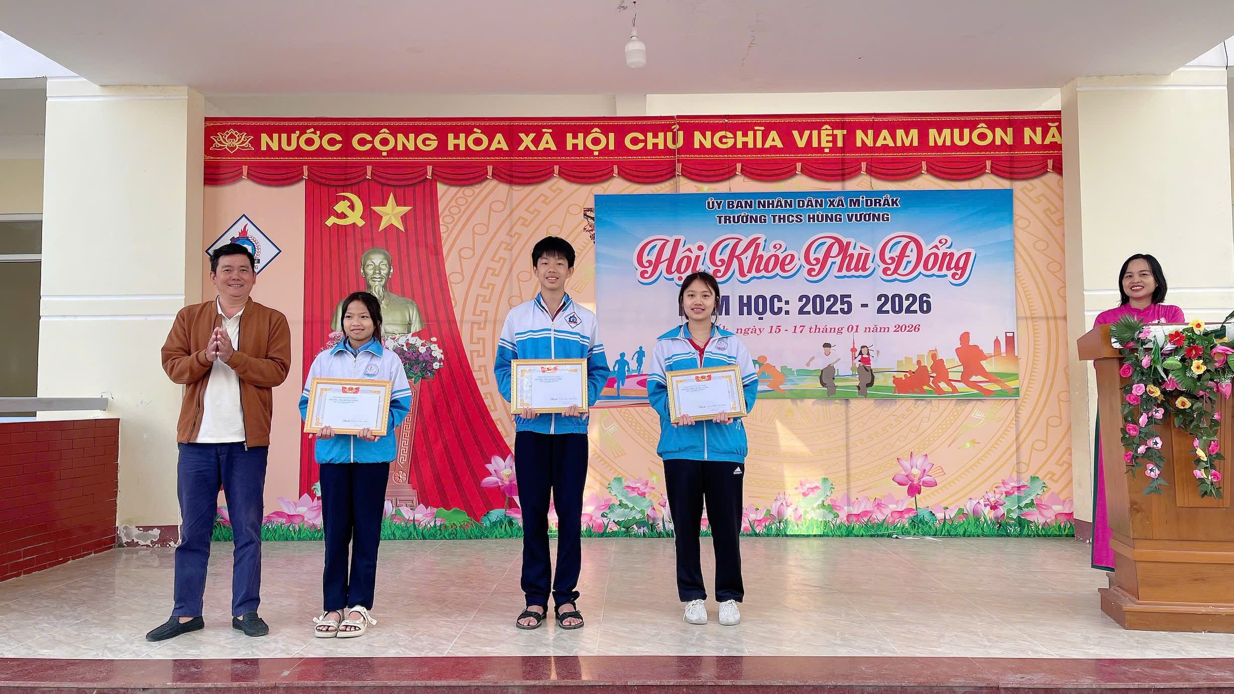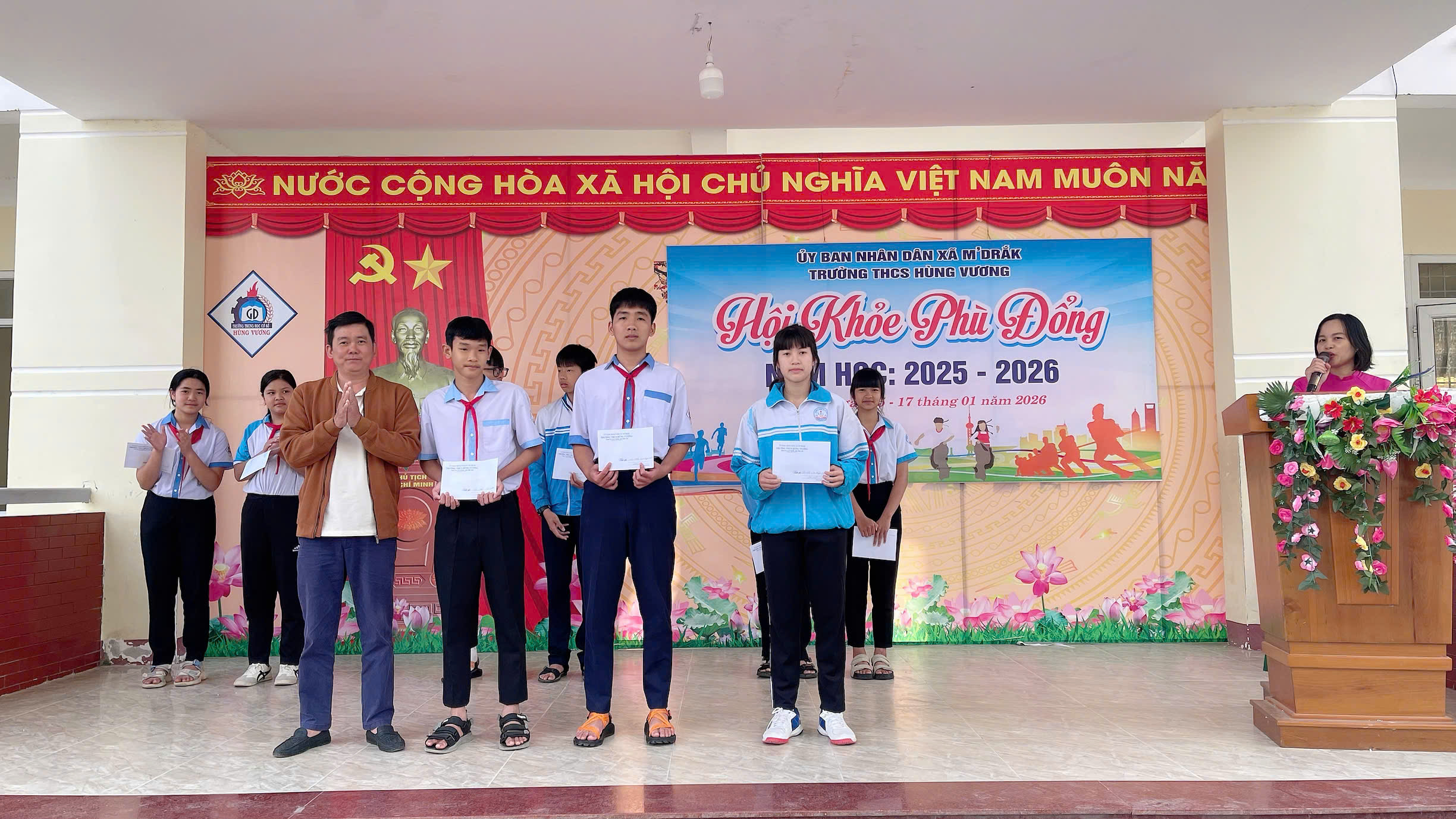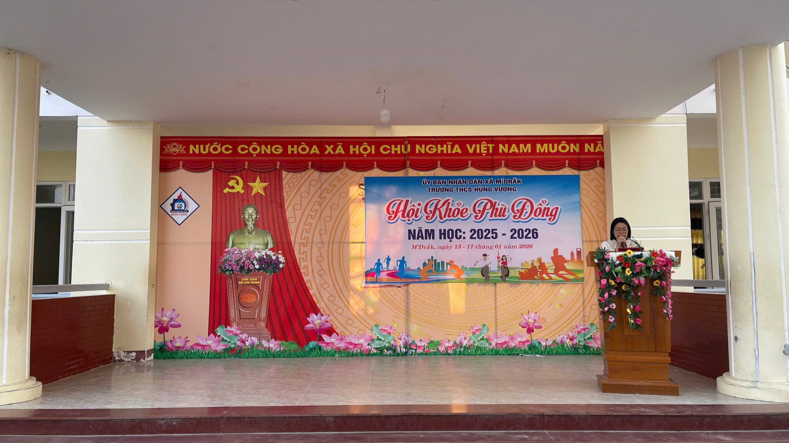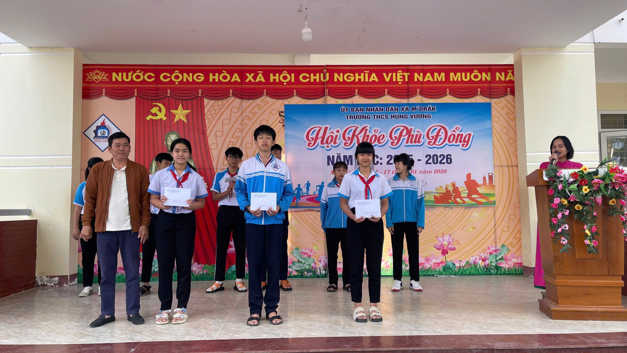 ❤️ ✨ 🌻 Sáng 19/01/2026, Trường THCS Hùng Vương (xã M’Drắk) đã tổ chức chương trình Sơ kết học kỳ I năm học 2025 – 2026, kết hợp Bế mạc Hội khỏe Phù Đổng cấp trường nhằm đánh giá toàn diện kết quả thực hiện nhiệm vụ giáo dục và phong trào thể dục thể thao học đường trong thời gian qua.