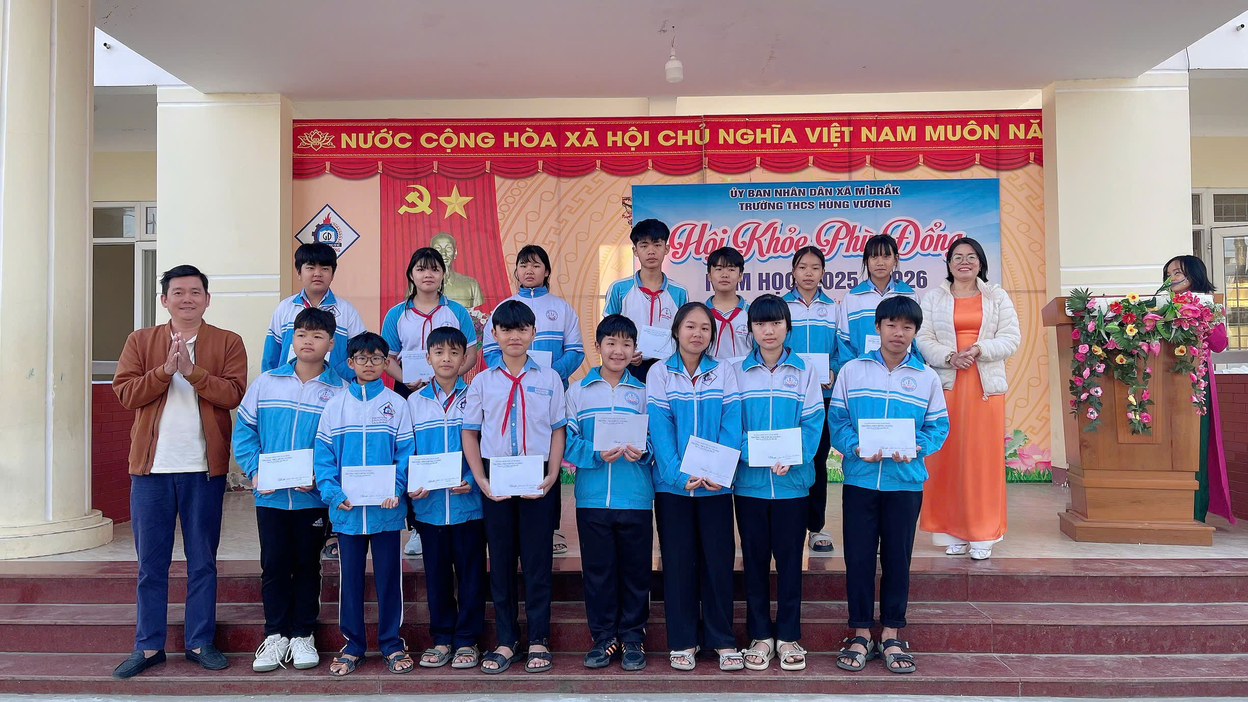 ❤️ ✨ 🌻 Sáng 19/01/2026, Trường THCS Hùng Vương (xã M’Drắk) đã tổ chức chương trình Sơ kết học kỳ I năm học 2025 – 2026, kết hợp Bế mạc Hội khỏe Phù Đổng cấp trường nhằm đánh giá toàn diện kết quả thực hiện nhiệm vụ giáo dục và phong trào thể dục thể thao học đường trong thời gian qua.