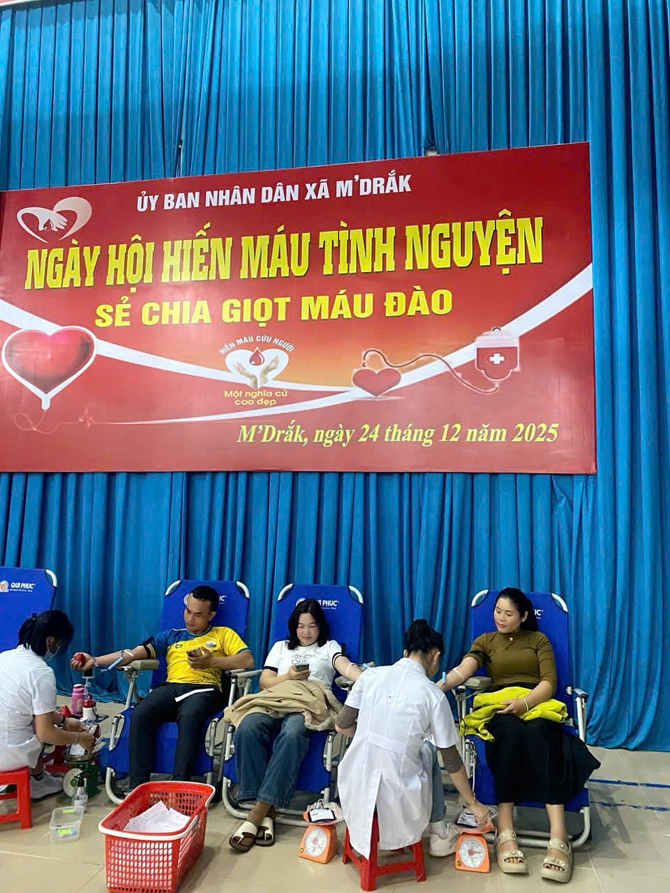 🌸 Trong buổi sáng ngày 24/12, tại địa điểm tổ chức, không khí diễn ra hết sức khẩn trương và ấm áp tình người. Đại diện cho tập thể nhà trường, có 02 đồng chí đã trực tiếp tham gia hiến dâng những giọt máu hồng quý giá: