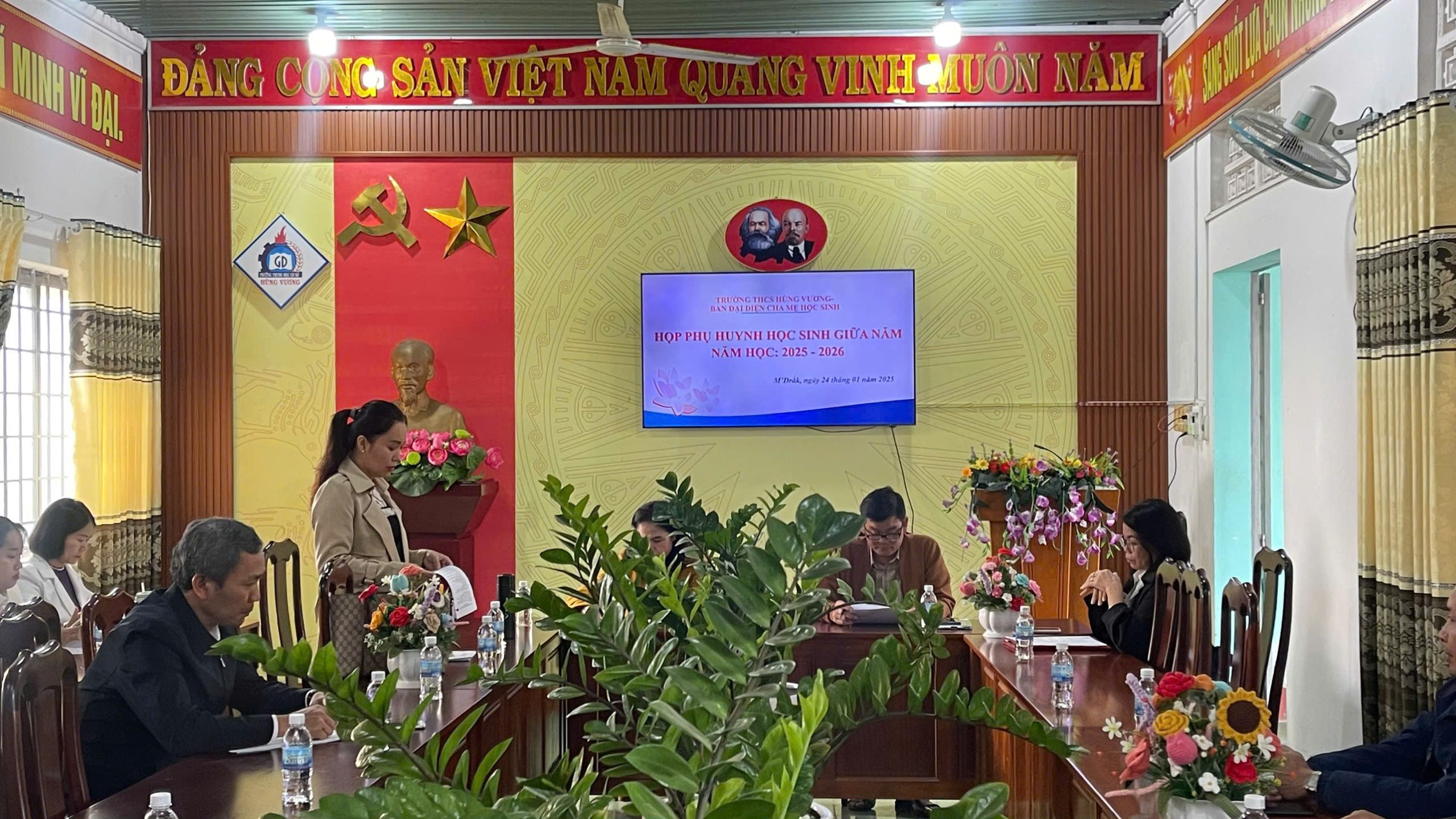 ✨ Sáng Sáng thứ Bảy, ngày 24/01/2026, trường THCS Hùng Vương đã tổ chức thành công Buổi họp Cha mẹ học sinh sơ kết Học kỳ I năm học 2025 – 2026. Sự kiện được tổ chức nhằm báo cáo tình hình hoạt động của nhà trường, đồng thời tăng cường mối quan hệ phối hợp giữa gia đình và nhà trường trong việc giáo dục học sinh.