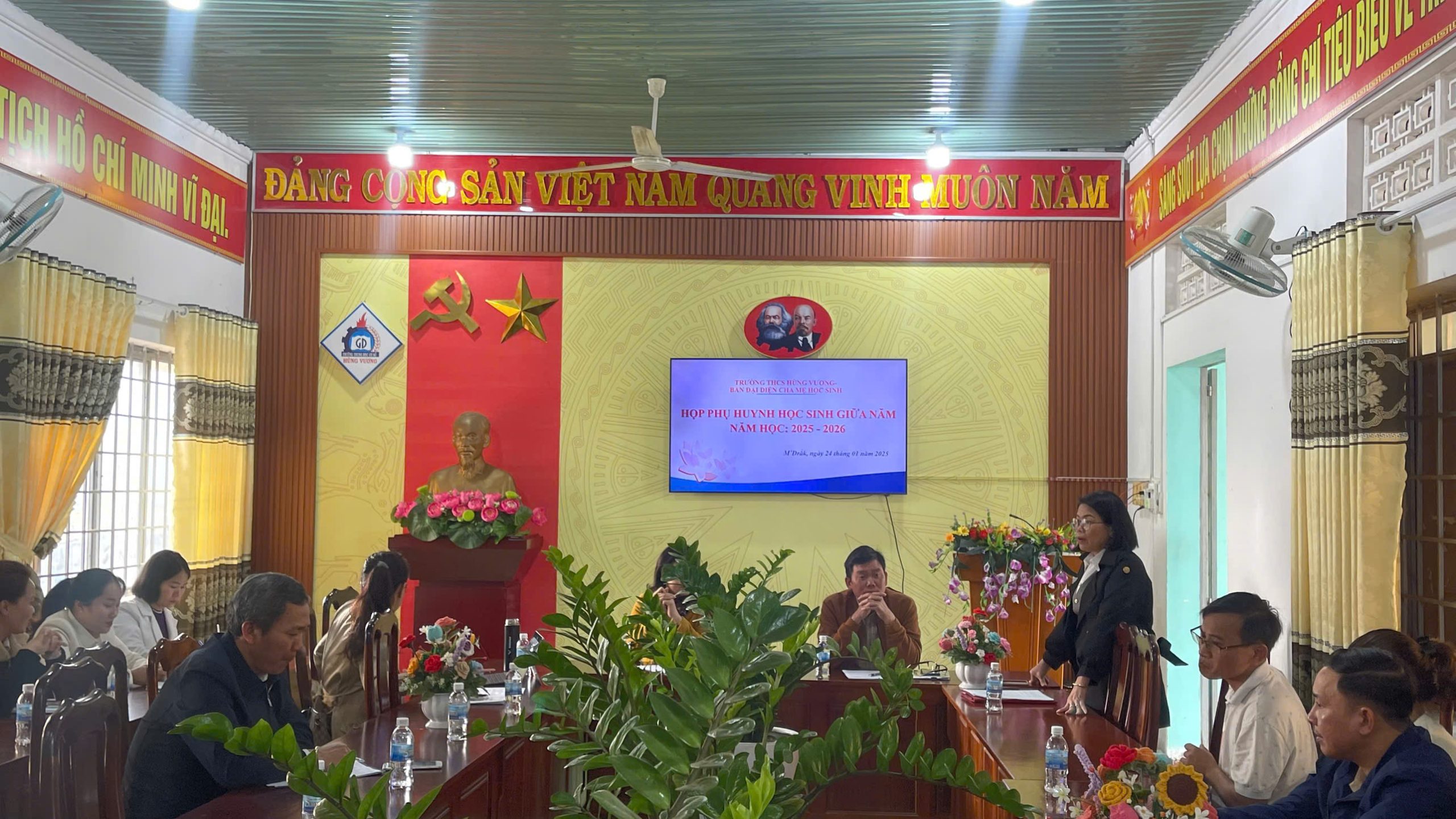 🌻 Sáng Mở đầu chương trình, từ 7h30 đến 8h20, cô Đỗ Thị Loan – Hiệu trưởng nhà trường và ông Dương Thái Chương – Hội trưởng Hội phụ huynh đã đồng chủ trì cuộc họp với Ban đại diện Cha mẹ học sinh nhà trường. Tại buổi làm việc, lãnh đạo nhà trường đã báo cáo chi tiết về tình hình thực hiện nhiệm vụ giáo dục trong nửa đầu năm học, nhấn mạnh vào các hoạt động trải nghiệm và phong trào học sinh. Hội trưởng hội phụ huynh thông qua công tác thu chi, định hướng phối hợp của phụ huynh với Nhà trường trong thời gian tới. Cuộc họp diễn ra trong không khí cởi mở, thể hiện sự đồng thuận cao giữa nhà trường và phụ huynh trong việc thực hiện mục tiêu giáo dục toàn diện: Đức – Trí – Thể – Mĩ.